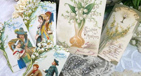 フランスアンティークすずらん画材用木製ボックス